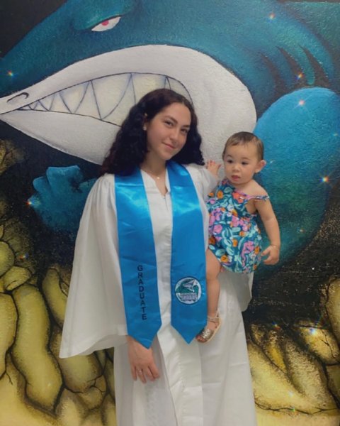 Her daughter, Bella, will see her walk across the stage! #sharkpride #classof2022 #finishschool #nextlevel #grad #graduate